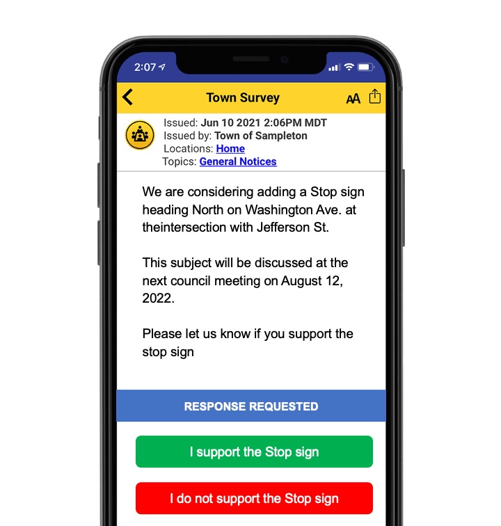 “[We were] intrigued when we saw the ability it had to do a variety of alerts, not just emergency situations. This could fill that void we lost from our local newspaper closing. Like sending notifications on council meetings and the ability to have better engagement with our residents through small polls for certain types of information when we want to get feedback.”